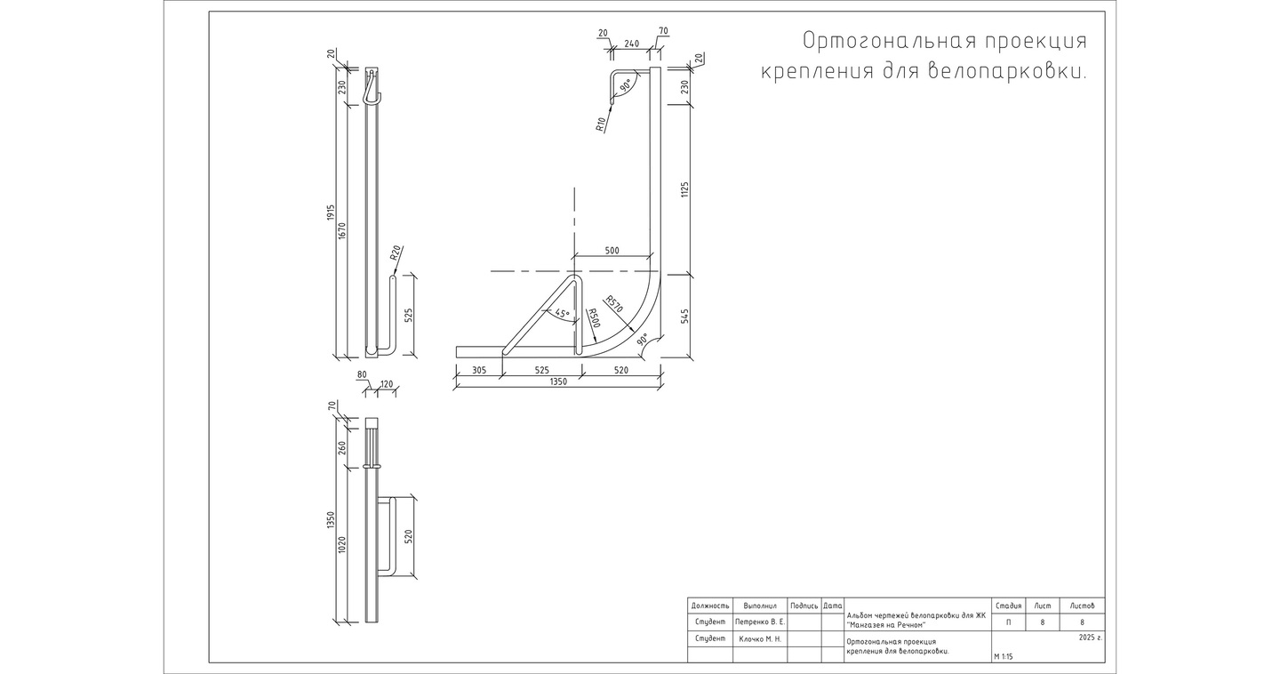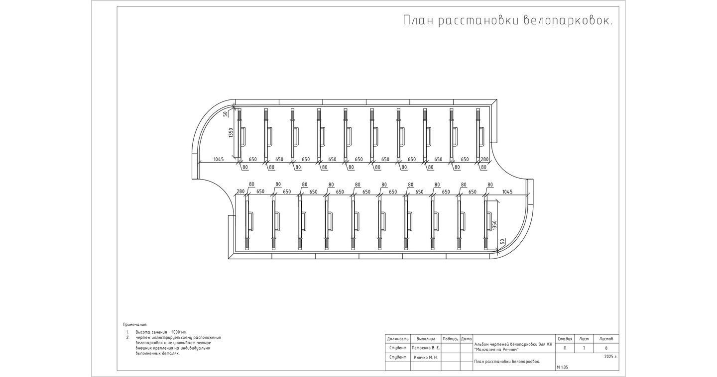 Примечание к конструкции: необходимо учесть вхождение арматуры (анкерной конструкции), составляющей основание оригинальных форм внешних мест для парковки велосипеда, в почву на глубину до 1 м, а также соответствующий утяжелитель.