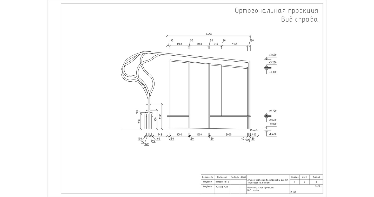 Основная же часть основана на упрощенном речном камне, края которого зеркально вырезаны, что позволяет пересечь объем велопарковки по прямой, а также простроить удобный маршрут относительно окружения.