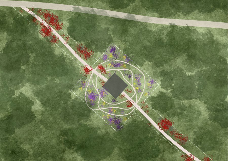 Главную ось-аллею с красными ягодами, растениями и цветами хотелось сделать как будто частью леса, его продолжением, вдохновляясь проектом Дэна Пирсона «Tokachi Millenium Forest» в Японии. Естественные дорожки, как ручьи, папоротники, мхи.