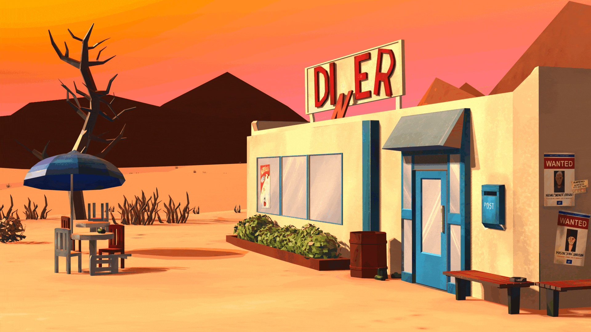 Промпт для ChatGPT: Write a prompt for an interior image of a pop-up Rachel Roads diner. Background is mountains and a setting sun. Colors: cream, with coral and torquoise accents. There are Rachel Roads products on the counter, as well as a «Rachel Roads: title neon sign on the wall. There is no people. Cozy atmosphere, cinematic and retro-Americana style.