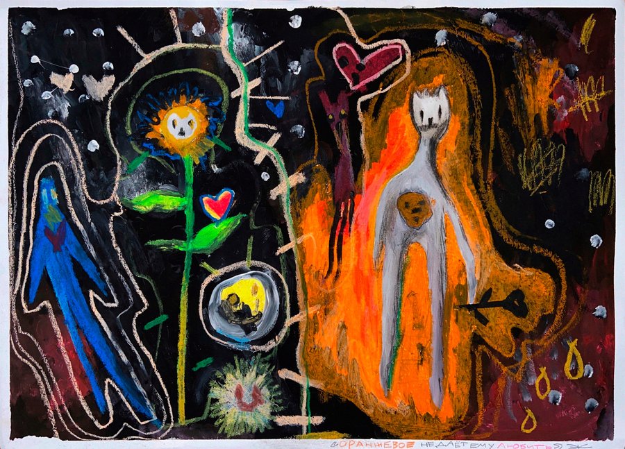 «Спичка» стала главным персонажем, изображая свет и тьму, счастье и меланхолию. В этой серии иллюстраций Спичка, как и человек, зажигается, горит и гаснет.