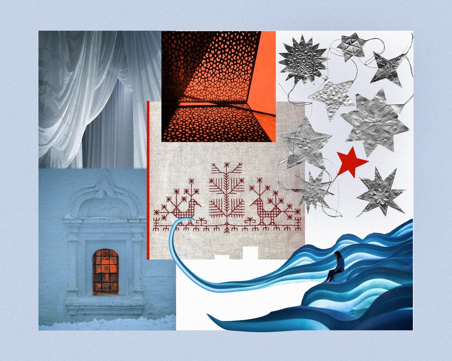 Необходимо поддержать основную задачу — создать новогодний праздник в современном прочтении. В своей работе я хочу отразить контраст зимнего сезона — такого холодного снаружи, но теплого, родного и уютного внутри.