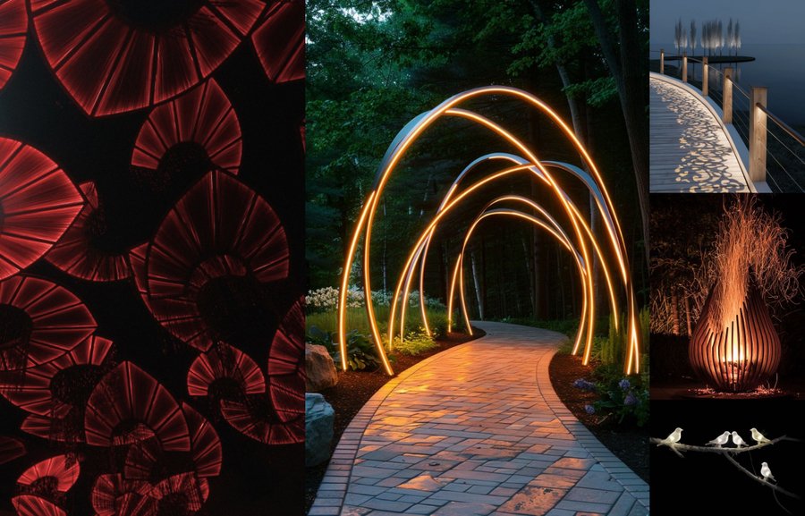 По тропе гостей будут сопровождать световые проекции, ведущие от одного объекта к другому, образуя маршрут. Например, проекции следов животных, сказочных птиц на деревьях и т. п.