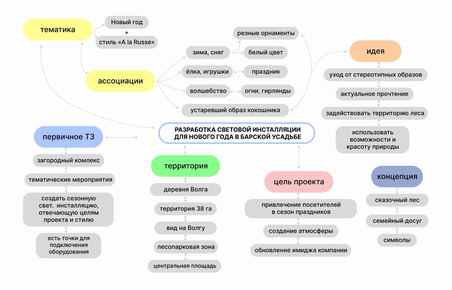 Разработка mind map позволила проанализировать техническое задание от заказчика с разных сторон и составить концепцию с учетом этих аспектов