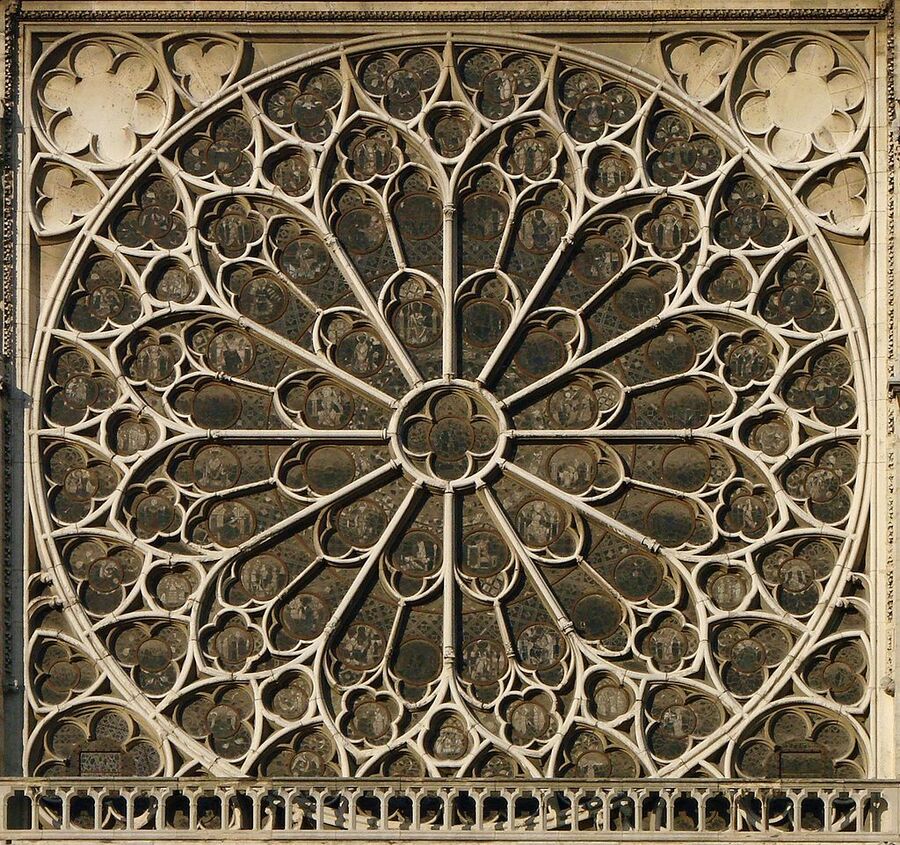 В XIII в. лучистые розы появились и в Соборе Парижской Богоматери. Переплеты Северной и Южной роз, добавленных позже, значительно тоньше и сложнее, чем переплеты Западной розы собора или розы Сен-Дени, что отражается эволюцию стиля лучистой готики.