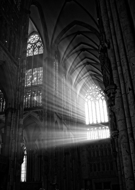 Готическая архитектура — символическая. Она передает наставление человеку отринуть материальный мир и возвыситься духовно в свете любви, который через окна соборов проливает на него Бог. На разных этапах зодчие открывали все новые и новые средства для выражения этой идеи.