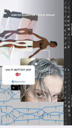 • The bag satisfies the need for public identity expression («digital explorer»), using gray palettes and 3D depth. • The cuff addresses the spiritual need for boundary expansion, through symbols like blurred crosses. • Together, both objects solve a practical task, merging functionality with a deep symbolic layer, processed with acid graphics for emotional resonance.