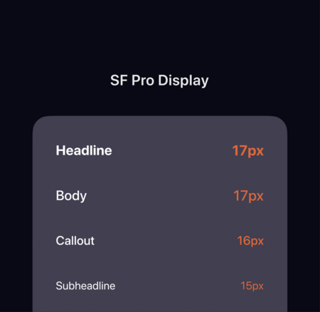 - SF Pro Display functions as the primary body typeface, ensuring readability and familiarity within a digital interface.