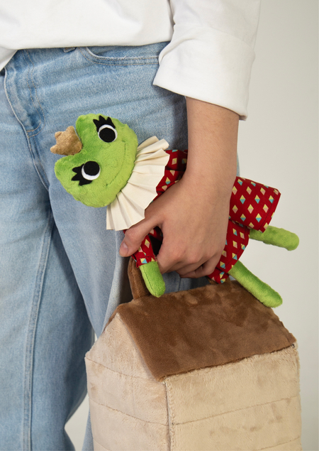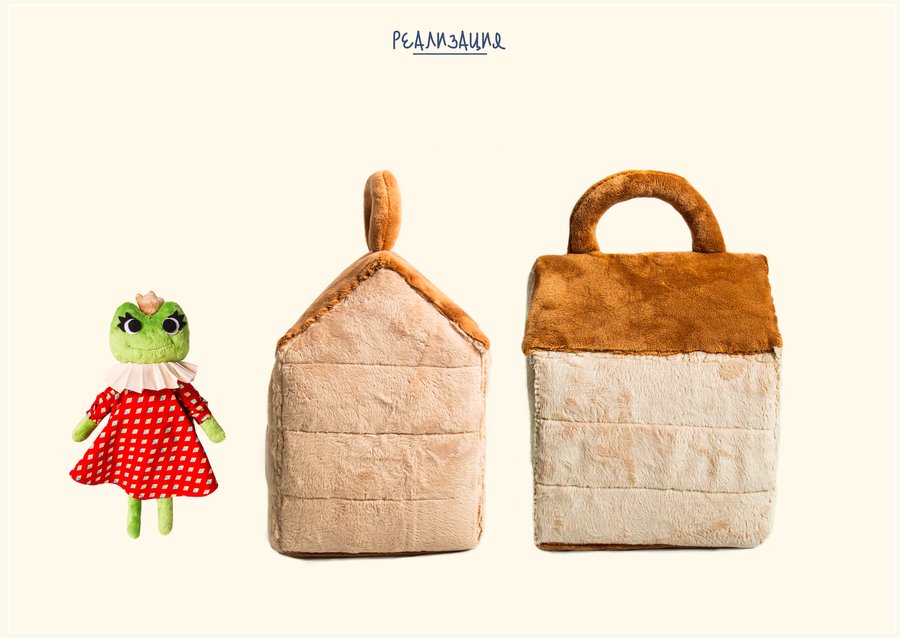 Внутри живет один из плюшевых персонажей русских сказок — Царевна Лягушка, остальных персонажей можно выбрать самостоятельно или докупить отдельно без домика, собрав полный состав одноименной сказки