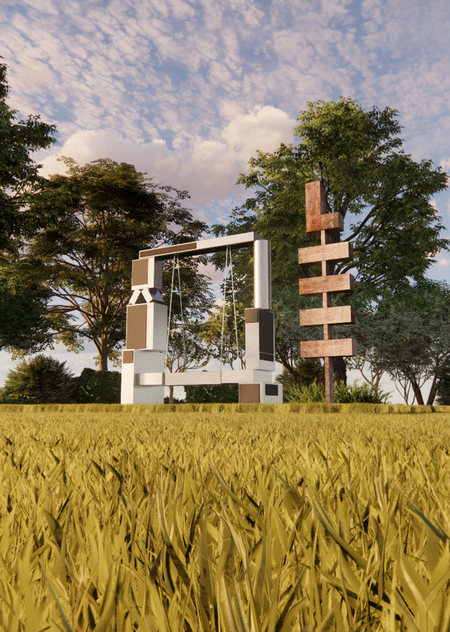 Этим объектом хотим вызвать чувство вовлеченности, зритель может не только созидать, но и взаимодействовать с постройкой.