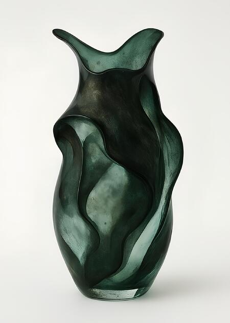 Logo design prompt (ChatGPT): Minimalistic Art Nouveau–inspired logo without text, featuring abstract organic silhouettes resembling glass vase. Elegant curves, fluid forms, and a refined palette of deep green, smoky black, and translucent turquoise — modern, sculptural, and glass-like.