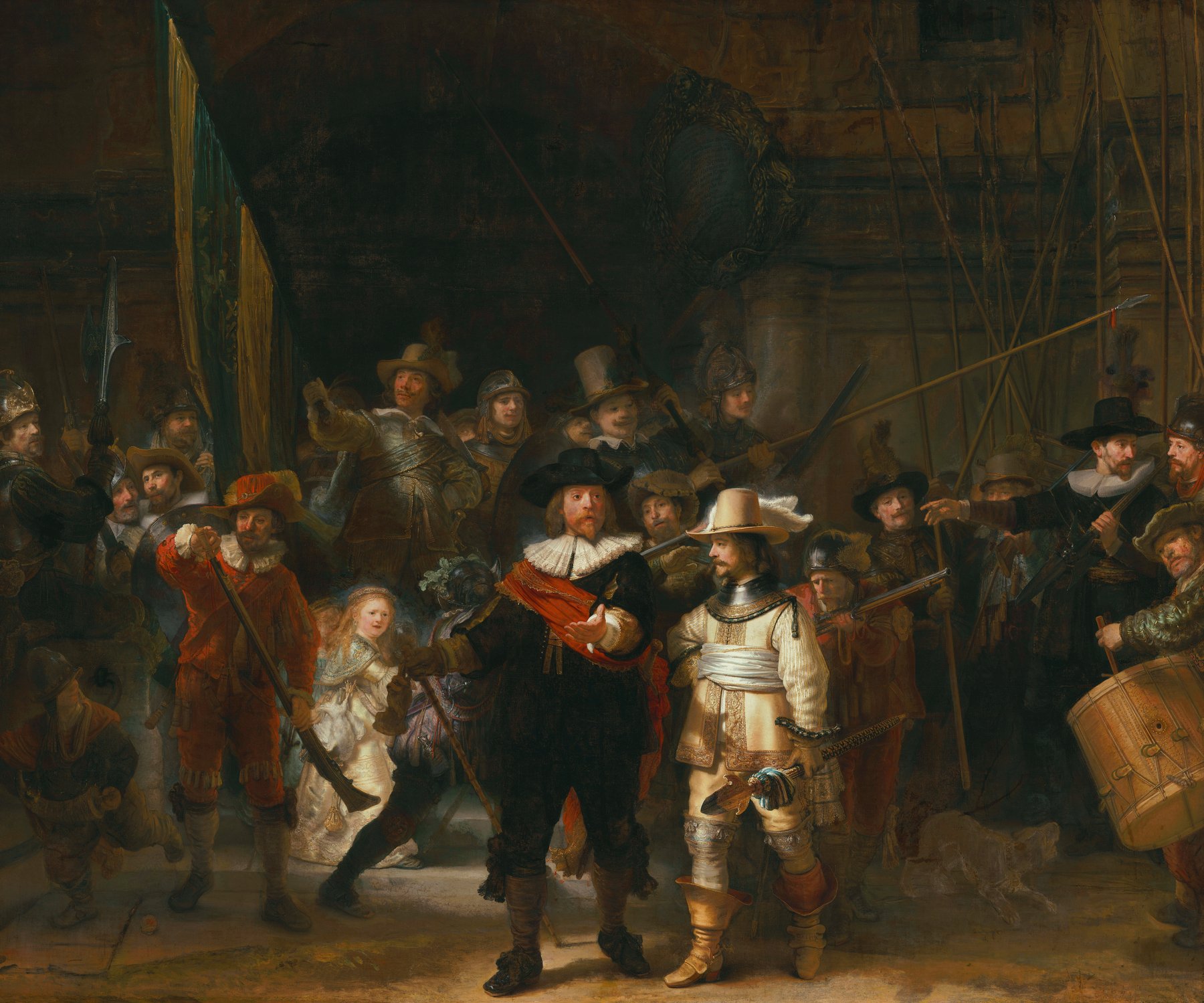 «Ночной дозор» Рембрандта ван Рейна (полное название — «Выступление стрелковой роты капитана Франса Баннинка Кока и лейтенанта Виллема ван Рёйтенбюрга») — вершина Золотого века нидерландской живописи. Это монументальное полотно было написано в 1642 году по заказу амстердамской стрелковой гильдии. Автор создал новаторское произведение, проявив бунтарский дух и бросив вызов правилам традиционного парадного портрета. Нарушая канон, он отверг формальность, статику и идеализацию персонажей, чтобы наполнить полотно непосредственностью, движением и тайными знаками. Уникальное художественное видение мастера шло наперекор ожиданиям заказчиков, что привело к их раздражению и разочарованию. При жизни художника картина не была оценена по достоинству, однако сегодня она признана непререкаемым символом национальной гордости Нидерландов.