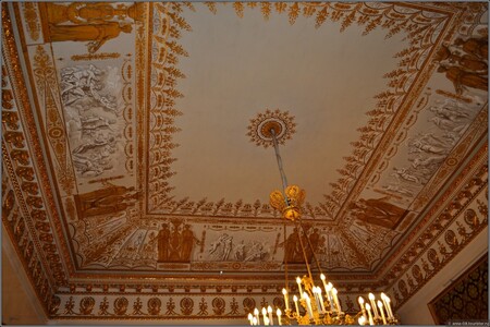 Красная гостиная, 1840-е г. / Роспись плафона красная гостиная, выполнена итальянскими художниками Б.Медичи и П.Скотти на сюжеты поэмы Гомера «Илиада»