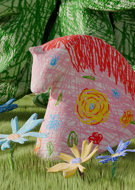 УГОЛОК ИЗ ДЕТСТВА — пространство, созданное из личных дестких рисунков, как тёплый уголок, где ты всегда остаёшься ребёнком, это поляна на которой собраны животные и растения МАТЕРИАЛЫ: все объекты раскрашены карандашами