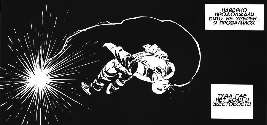 Для инверсии Франк Миллер в основном использует пустой фон, который не отвлекает от эпизода или персонажа