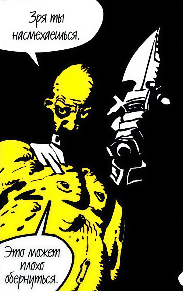 Для того, чтобы разнообразить драму комикса, Франк Миллер добавляет желтый цвет, который воплощает зло в данном комиксе