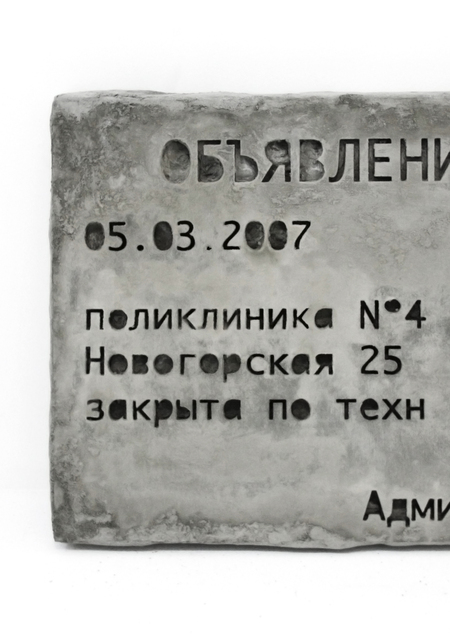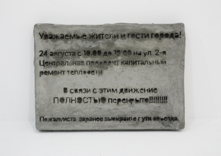 Чтобы довести их иррациональную долговечность до еще бОльшего абсурда, я изготавливаю таблички из бетона, увековечивая бесполезную информацию.