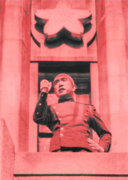 25 ноября 1970 года Мисима и его соратники попытались поднять военный мятеж. Вооруженные мечами, они ворвались на одну из токийских военных баз, захватили коменданта и потребовали собрать солдат. Стоя на крыше. Мисима произнес десятиминутную речь, призывая напасть на парламент и защитить императора. Но его никто не слушал. Существует множество фото Мисимы во время его речи сделанных с разных точек площади. Момент определяющий его судьбу можно подробно изучить, рассматривая их.