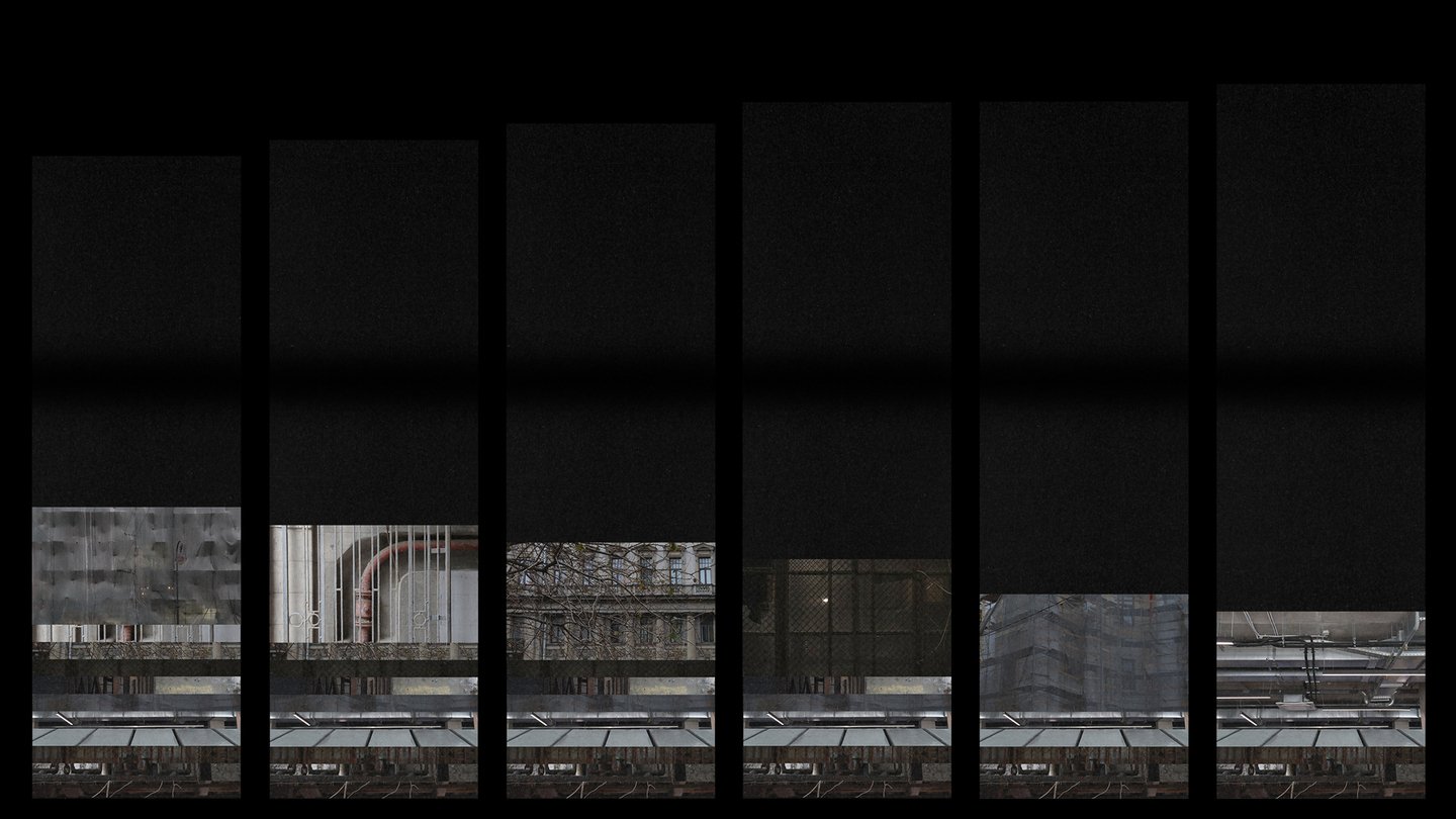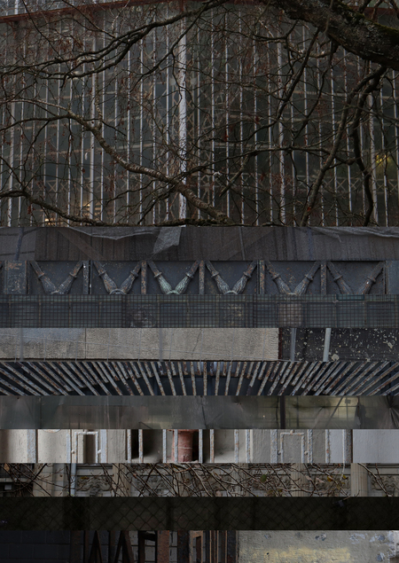Серия запечатляет это ощущение в изображениях заполненной городской среды, где текстуры и материалы накладываются друг на друга, создают общий мельтешащий ритм, образующий единый паттерн.