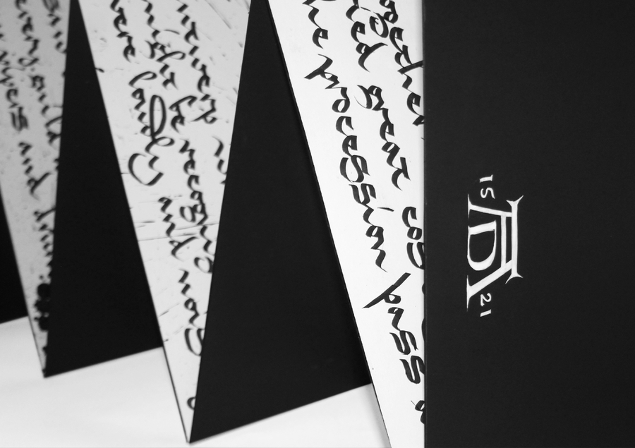 Буквы очень пластичный материал и способны меняться и создавать новые графические структуры в зависимости от поставленной задачи. Композиции из строк, знаков и блоков текста способны выражать идеи и эмоции и у каллиграфии для этого существует неограниченный арсенал средств.