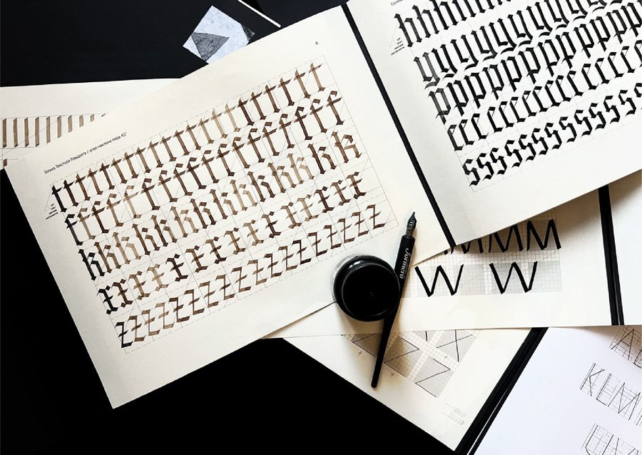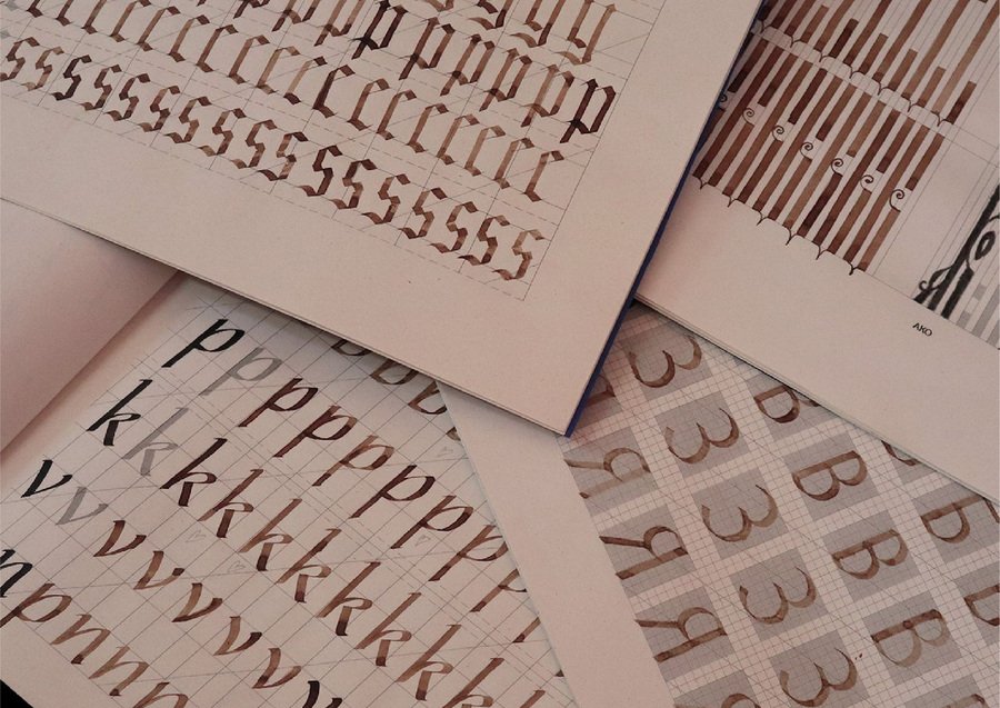 Характер письма во многом зависит от того, чем и на чём оно выполнено. На курсе мы учимся использовать разные инструменты и материалы в зависимости от задачи.