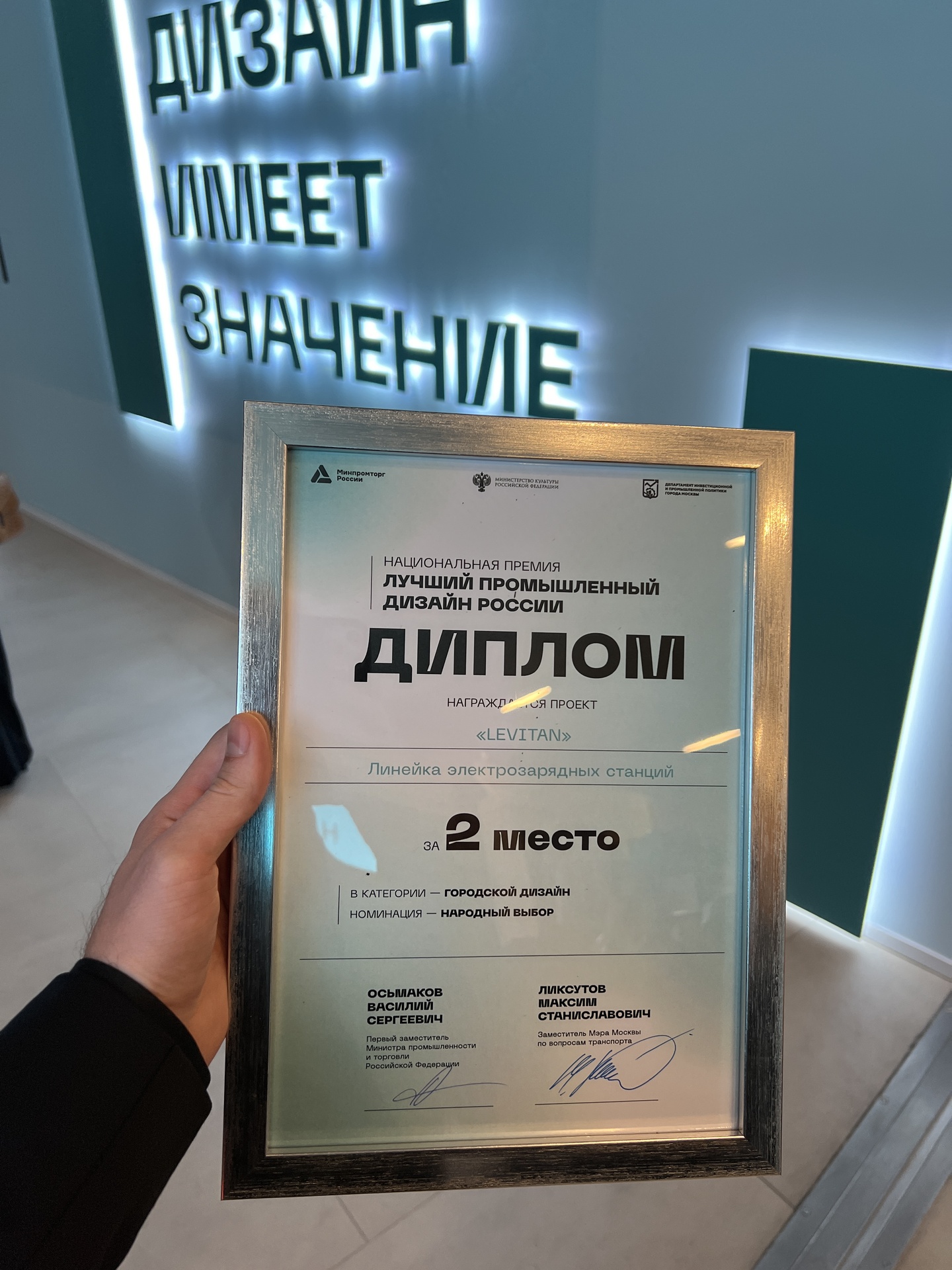 Проект Алексея Голованова «Система зарядных станций для электромобилей LEVITAN» стал лауреатом конкурса «Лучший промышленный дизайн России»